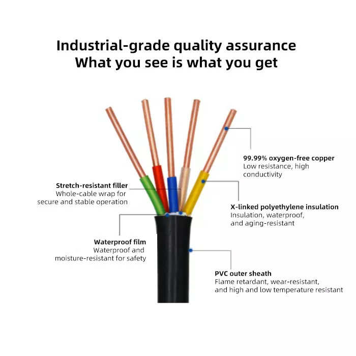 Isolering (YJ): XLPE bruges til at give langvarig temperaturmodstand op til 90°C og fremragende elektriske egenskaber, hvilket sikrer effektiv drift af kablet under normale forhold.