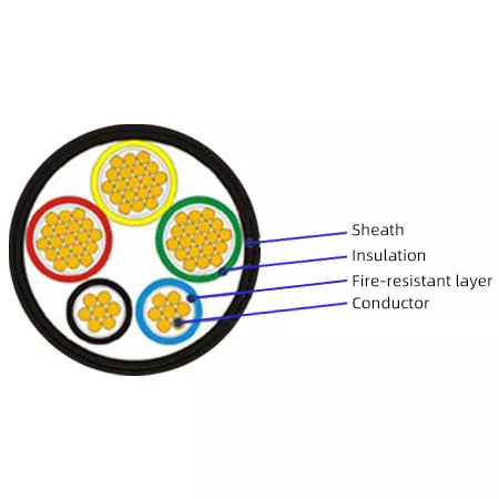 Ildfast lag (Core Soul): Lederen er tæt pakket ind med et ildfast glimmertape. Dette er nøglen til at opnå en brandsikker funktion. I en varm flamme brænder glimmertapen ind i en stærk, keramisk-lignende isoleringsskal, der omgiver lederne og forhindrer kortslutninger, og dermed bibeholder elektriciteten selv efter at isoleringen er brændt.